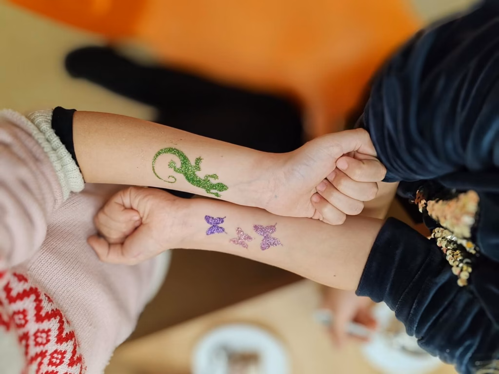- Tunni jooksul jõuab teha ligikaudu 15 glitter-tätoveeringut
